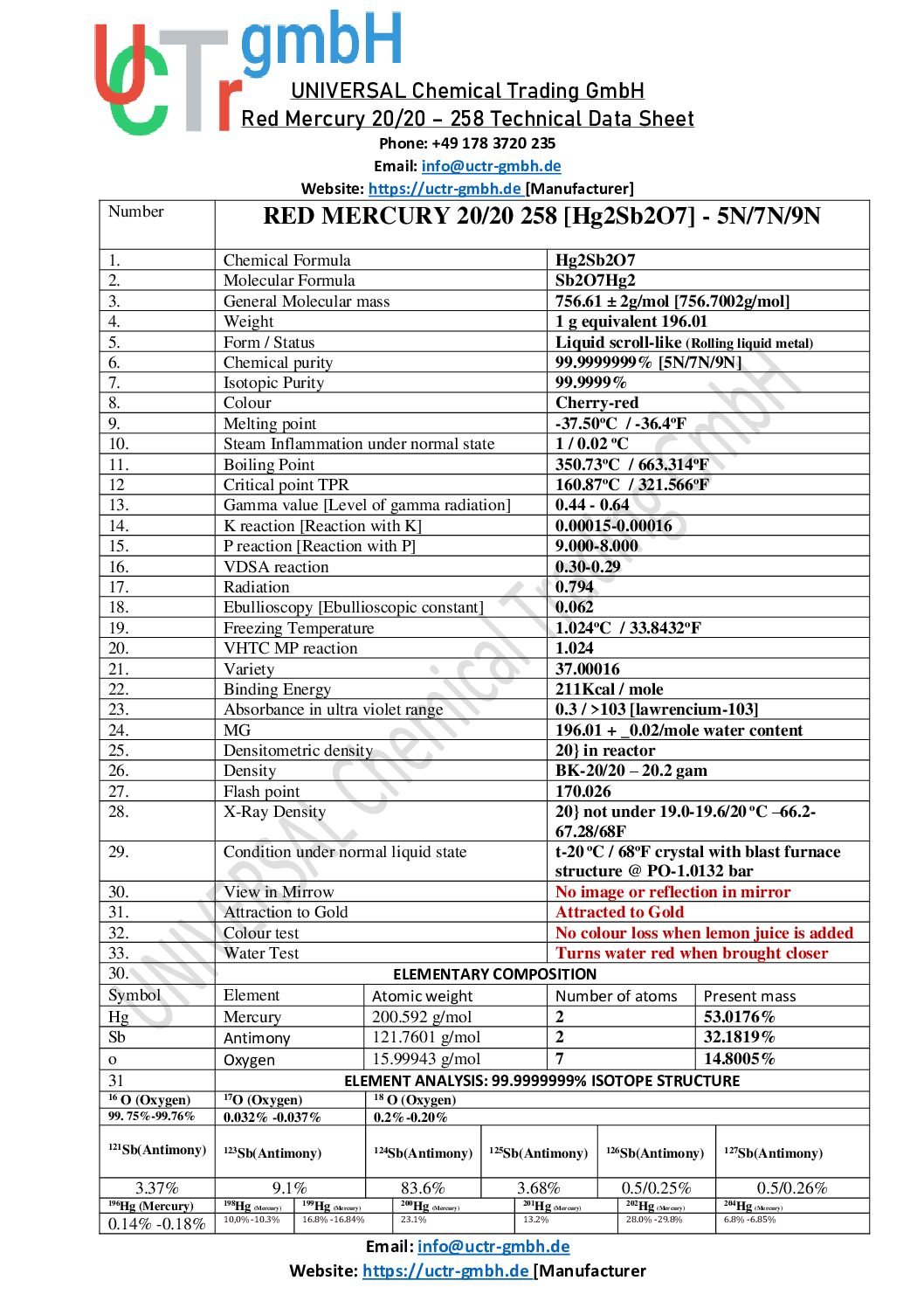 Why Choose German Red Mercury 9N Purity? ISO-Certified Production at UCTR